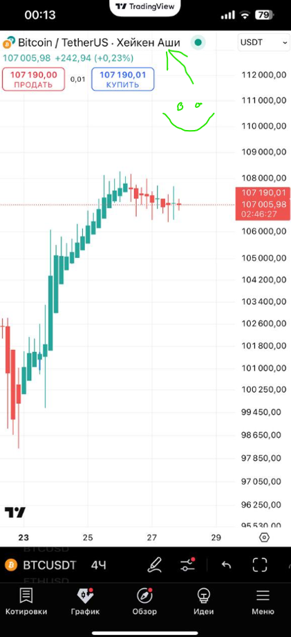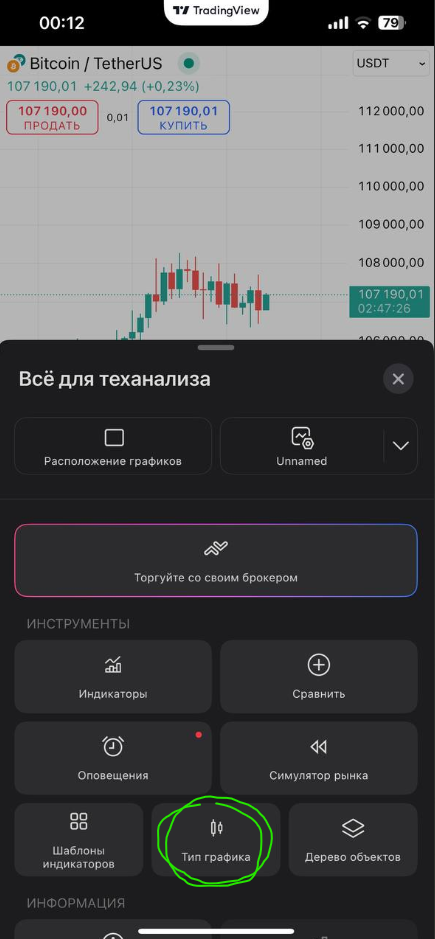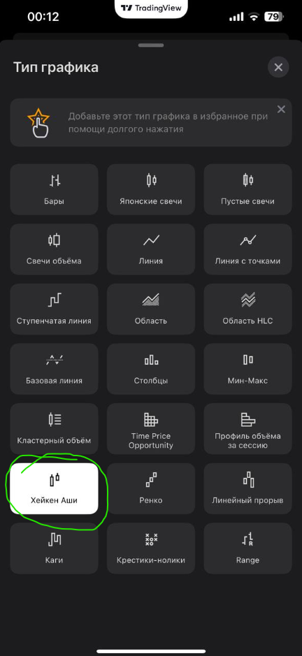 Как сделать Heikin Ashi на мобильном телефоне. Tradingview