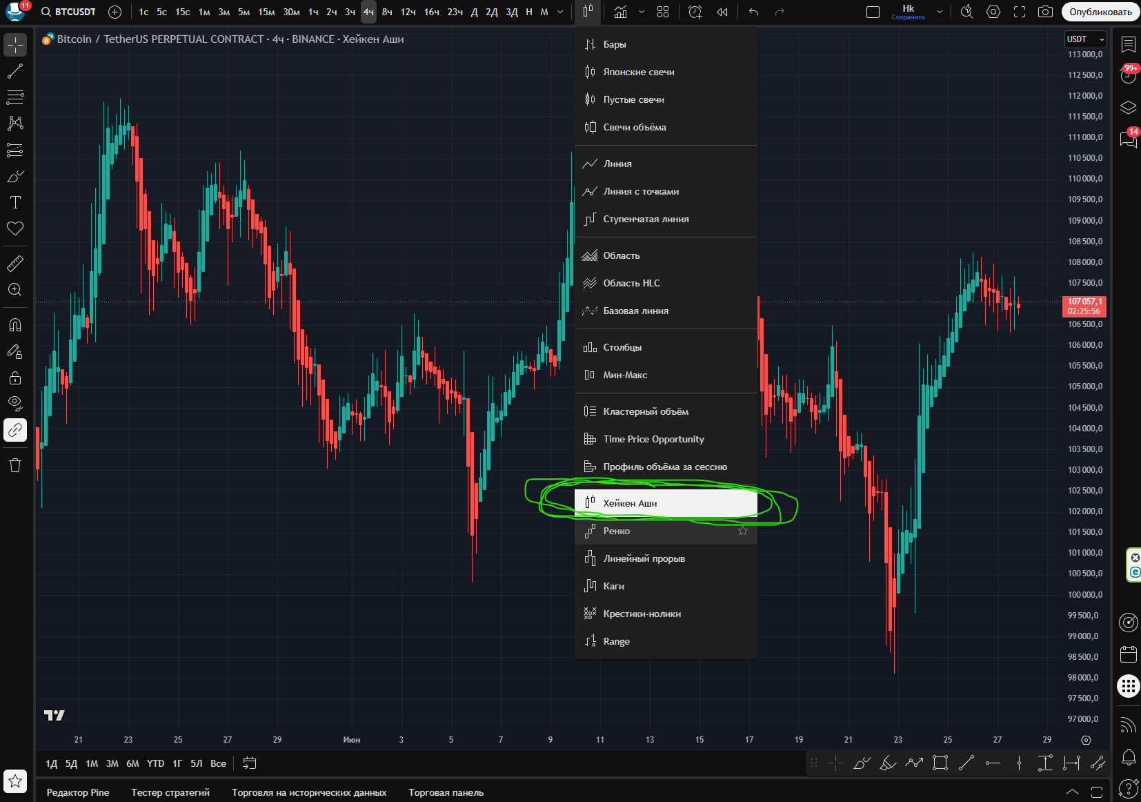 Как сделать Хейкен Аши (Heikin Ashi) на ПК браузере компьютере. Tradingview