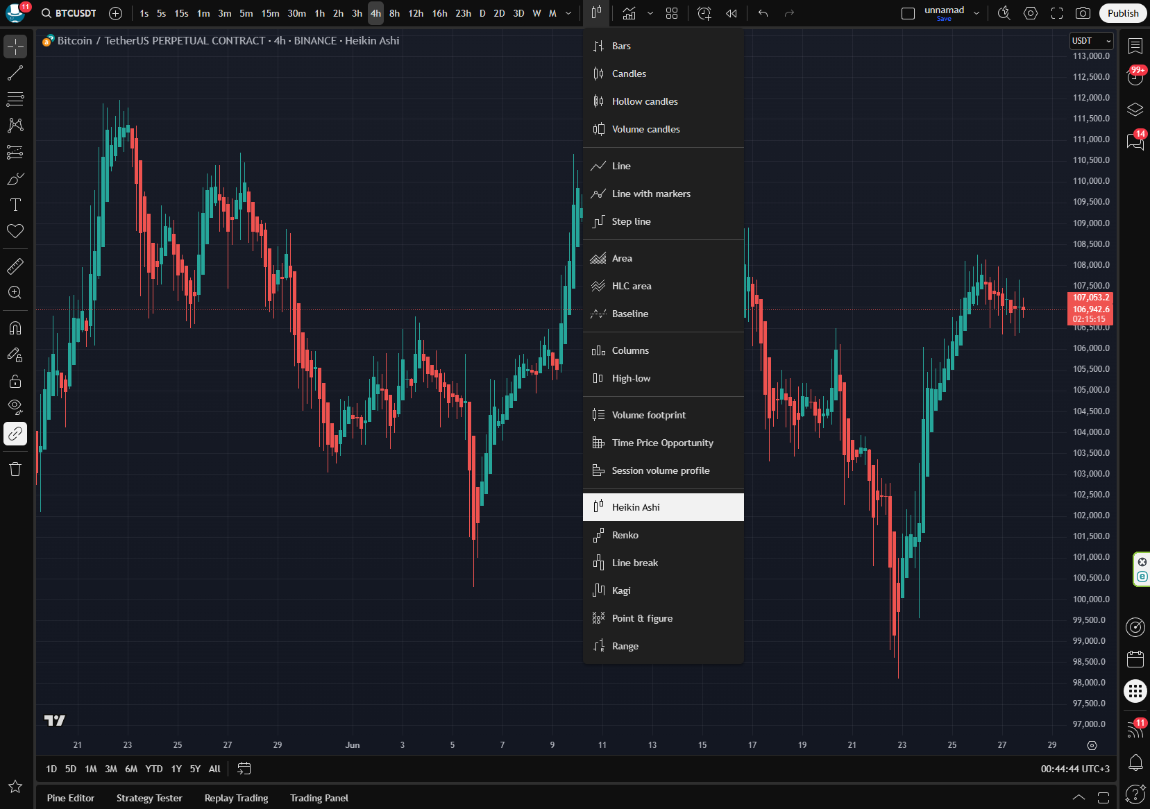 How to make Heikin Ashi on PC browser computer. Tradingview