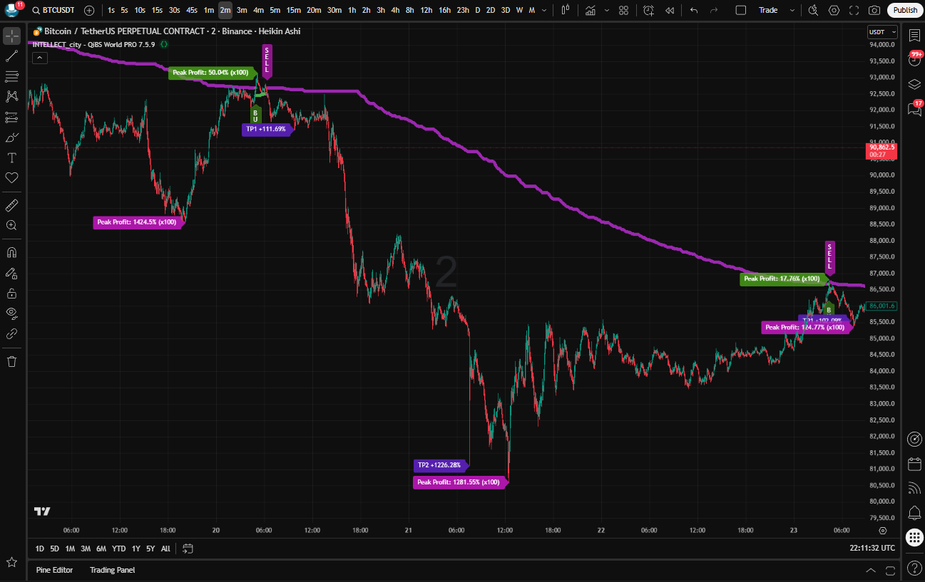 IMPORTANT: The ideal timeframe for this type of trading is a 2-minute timeframe. This algorithm is also suitable for all pairs, any timeframe, and all available exchanges.